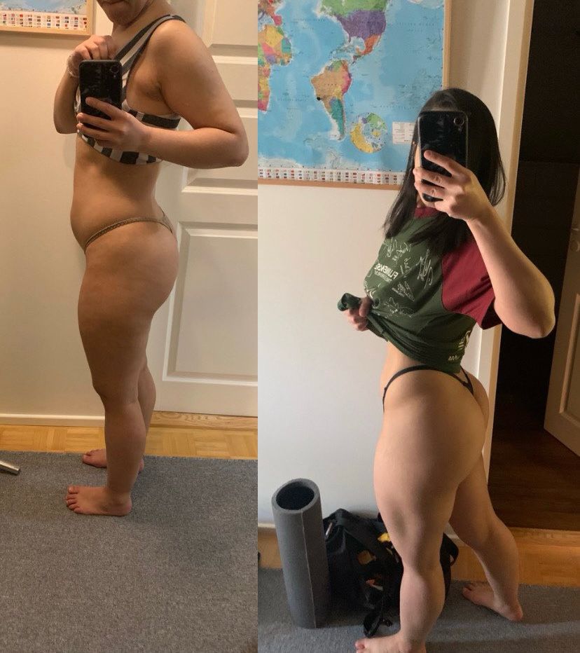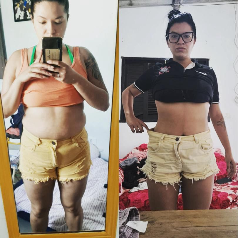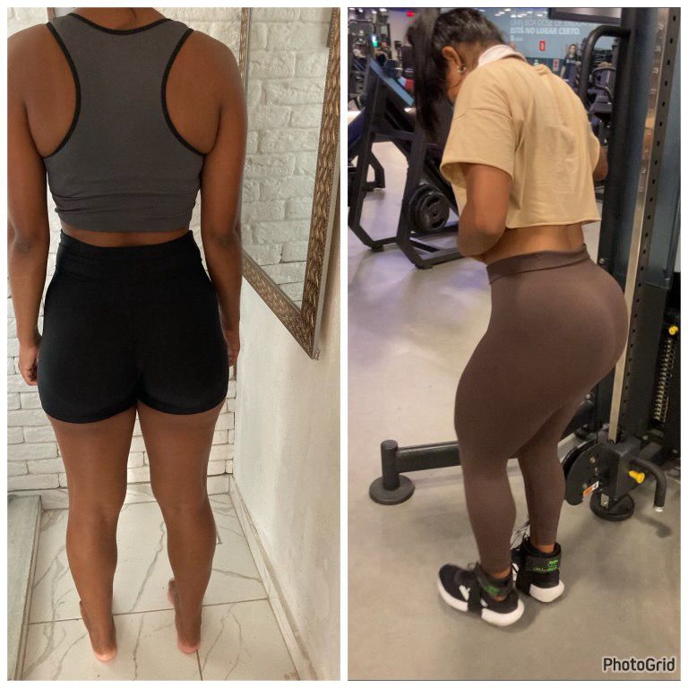 "AAAAAH to chocada com esse antes e depois, como meu corpo está tomando formas agora! A minha alimentação sempre foi certinha, mas ficava perdida na execução dos exercícios. Vocês vieram e salvaram minha vida hahaha só tenho a agradecer por isso. Obrigada por todo aprendizado, obrigada por nos salvar com A MELHOR PLATAFORMA DA VIDA ❤️❤️"